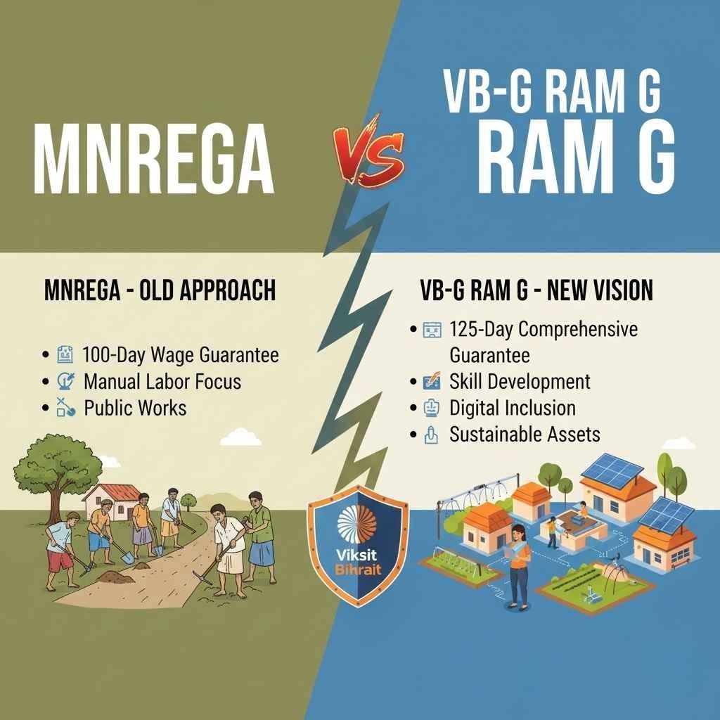 | Feature | MGNREGA (2005) | VB-G RAM G (2025) | Implications of Change |